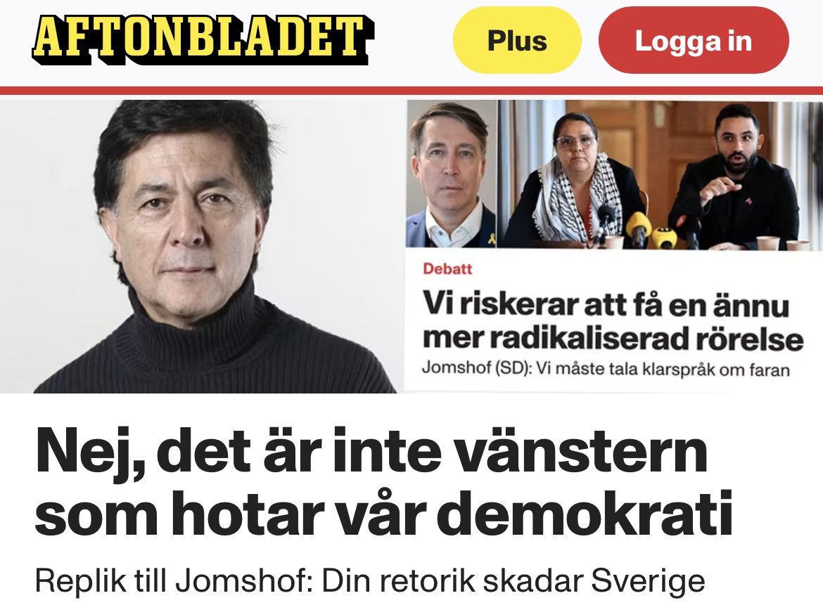 Richard Jomshof påstår i Aftonbladet (9/9) att Palestinasolidariteten är ”radikal” och ”antisemitisk”. Men FN, Amnesty och Human Rights Watch m fl. delar kritiken mot Israels krigsbrott. Det verkliga hotet mot demokratin är inte vänstern – det är SD:s hatpolitik.Det skriver Alex Fuentes i en replik till Jomshof – som även publiceras idag fredag på Aftonbladets … Läs mer