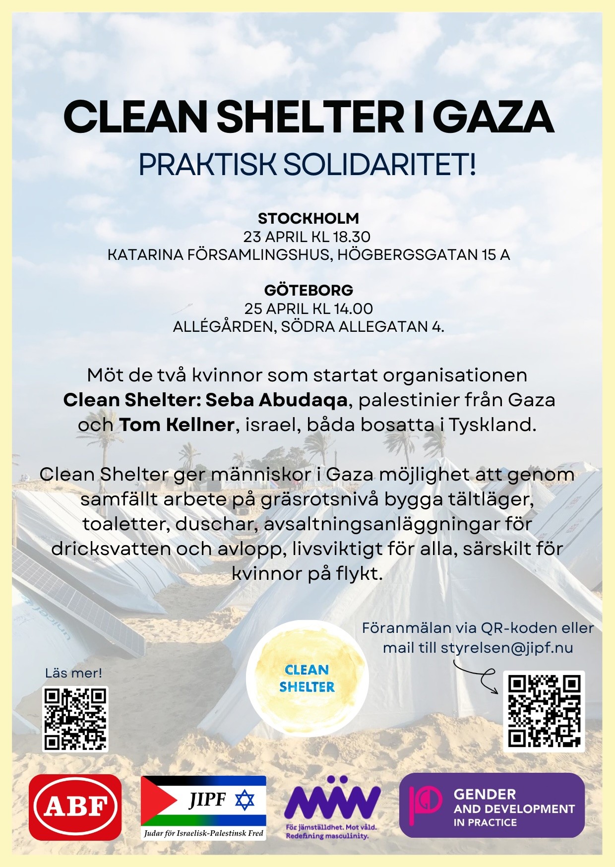 JIPF arrangerar två offentliga möten, i Stockholm och Göteborg. https://jipf.nu/dokument/besok-av-clean-shelter-i-sthlm-och-goteborg/