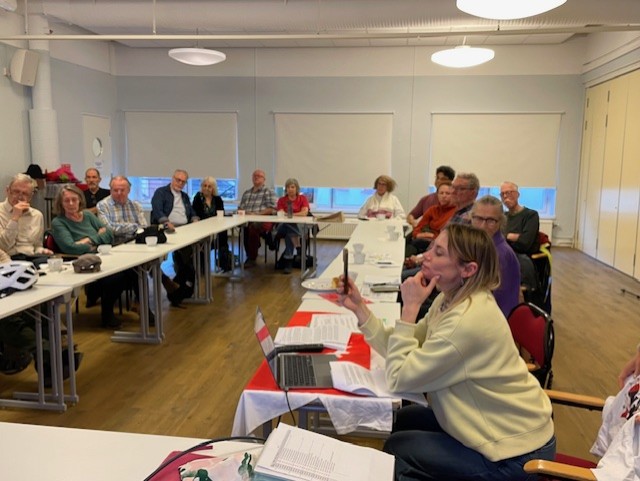 Närmare 30 personer hade samlats för att lyssna.