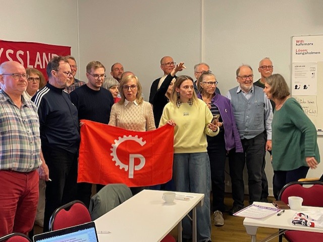 Maryna Mykhalova och Snizhana Oleksun från vänsterorganisationen Sotsialnyi Ruch (sociala rörelsen) har besökt Sverige där de bland annat deltog på Vänsterpartiets kongress med hälsningstal till kongressen och samtal med medlemmar och partiföreträdare. Den 20 april berättade de mer om Sociala Rörelsens arbete på ett möte på Kafe´ Marx i Stockholm arrangerat av Ukraina-Solidaritet.